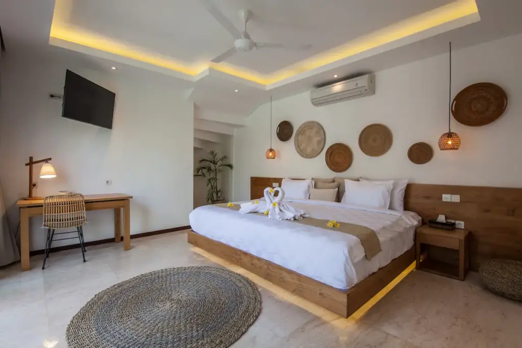 - 4 luxurious bedrooms featuring AC, TV,&en-suite bathrooms.